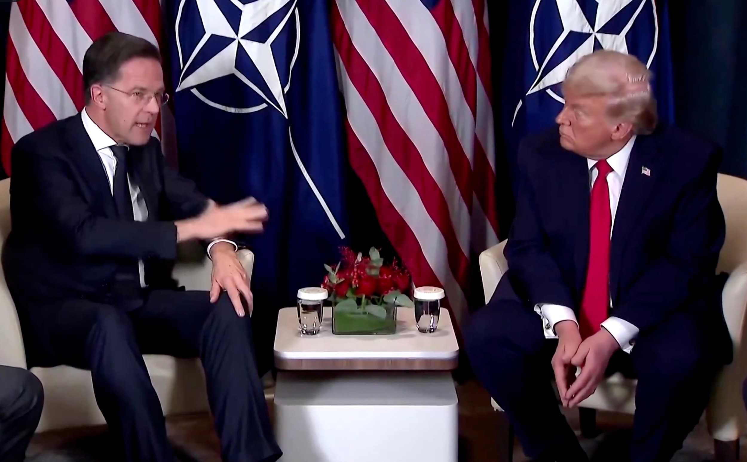 Tổng thống Mỹ Donald Trump hội đàm với Tổng thư ký NATO Mark Rutte hồi đầu năm nay tại Davos, Thuỵ Sĩ. Ảnh chụp màn hình.