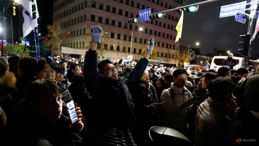 Đám đông bên ngoài Quốc hội, sau khi Tổng thống Hàn Quốc Yoon Suk Yeol tuyên bố thiết quân luật, tại Seoul, Hàn Quốc vào ngày 4/12/2024. Ảnh: REUTERS/Kim Soo-hyeon