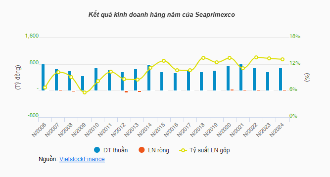Năm 2025, Seaprimexco đặt mục tiêu doanh thu 806 tỷ đồng, tăng 18% so với năm trước. Lãi trước thuế dự kiến 36 tỷ đồng, chỉ tăng gần 1%. Kim ngạch xuất khẩu mục tiêu 30 triệu USD, tăng 13%.