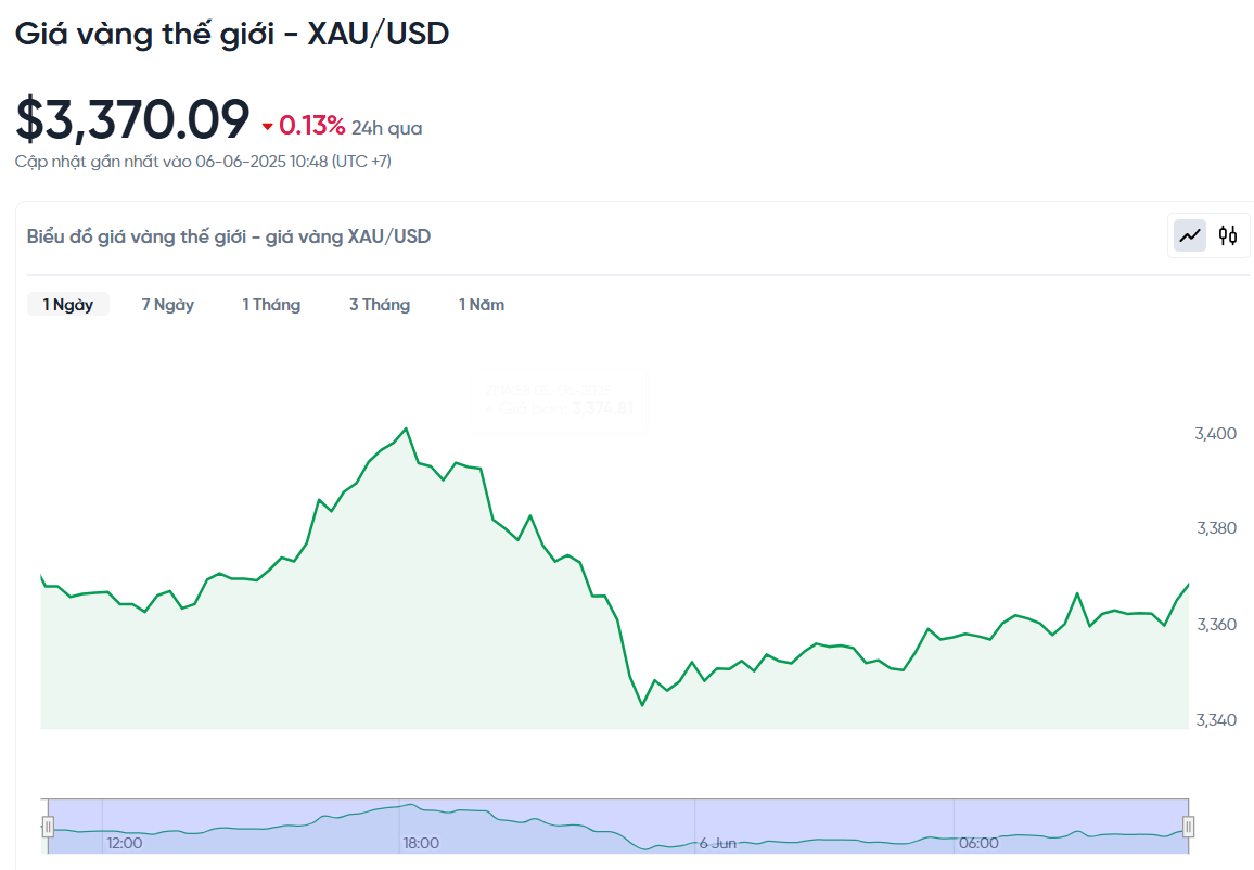 Cập nhật giá vàng hôm nay ngày 6/6/2025 mới nhất trên thị trường thế giới bắt ngờ quay đầu