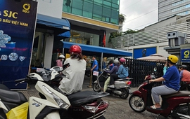 Tương tự, tại các điểm bán vàng của Agribank, VietinBank, BIDV, khách đến mua vàng đều phải xếp hàng lấy số thứ tự, chờ gọi tên đến thanh toán và nhận vàng.