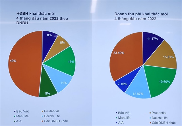 Theo thông tin cập nhật từ Hiệp hội Bảo hiểm, thị trường bảo hiểm nhân thọ tăng trưởng chậm lại trong thời gian qua. Cụ thể, trong 4 tháng đầu năm, doanh thu phí bảo hiểm khai thác mới đạt 15.000 tỉ đồng, giảm 8% so với năm 2021, còn tổng phí bảo hiểm đạt gần 52.000 tỉ đồng, tăng 4,5% so với cùng kỳ.