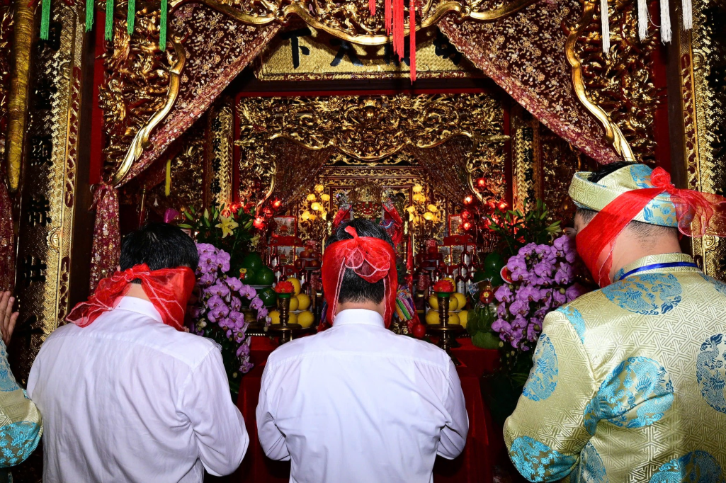 Lãnh đạo phường Minh Xuân thực hiện nghi lễ trước khi rước Long Ngai Thánh Mẫu đền Ỷ La. Ảnh: Phường Minh Xuân