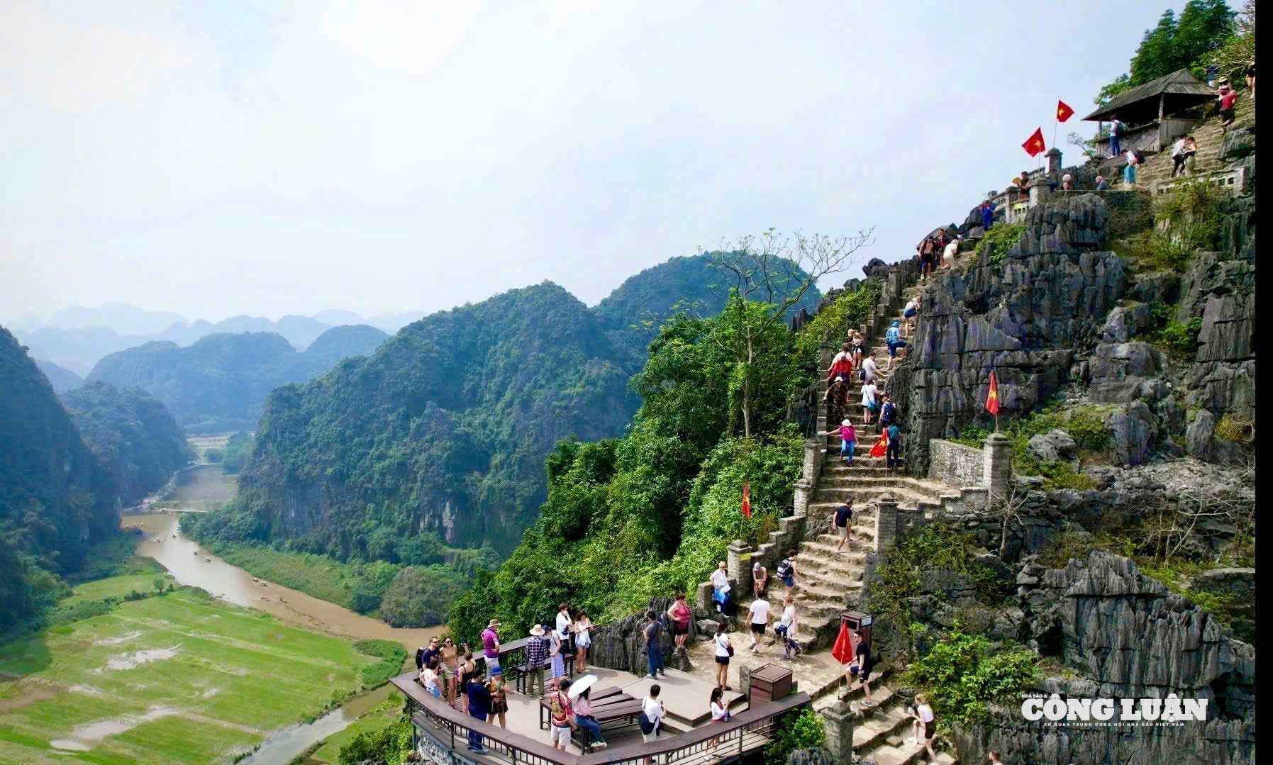 Trong số đó, Hang Múa - điểm du lịch nằm trong vùng lõi Quần thể danh thắng Tràng An, được xem là một trong những địa điểm check-in ấn tượng bậc nhất, nơi du khách có thể chiêm ngưỡng vẻ đẹp trọn vẹn của vùng non nước Ninh Bình từ trên cao.
