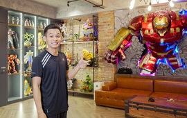Nam streamer đang sở hữu một căn nhà 7 tầng tại thủ đô có cả thang máy rất "xịn xò". Trong căn nhà bạc tỷ này, nổi bật nhất là căn phòng livestream của gia chủ với loạt mô hình dạng "khủng", "hiếm" và đắt đỏ các nhân vật trong Dragon Ball, Transformers cho đến Avengers và dàn máy tính hiện đại để phục vụ công việc.