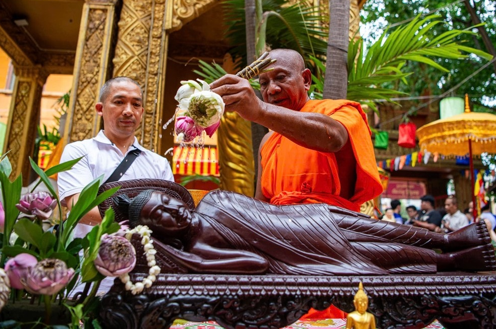 Chiều 16/4, tại chùa Candaransi (phường Xuân Hòa, TP HCM), lễ tắm Phật của đồng bào Khmer trong dịp Tết Chôl Chnăm Thmây chính thức diễn ra, thu hút đông đảo chư Tăng, Phật tử và người dân tham dự.